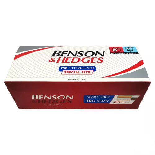 Гільзи Benson & Hedges характеризуються довгим фільтром та коротким простором для заповнення (порівняно зі стандартними трубками). Залежно від щільності набивання та особистих навичок при набиванні використання цих гільз дозволяє економити тютюн більш ніж на 10%. Ці трубки, що фільтрують, підходять для набивання всіх наявних у продажу тютюнів. Для ефективного використання гільз вам також знадобиться машина для набивання.