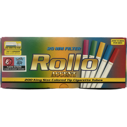 Цигаркові гільзи Rollo ACCENT виготовлені з високоякісного паперу. Стильні з різнокольоровим фільтром та білою основою. Діаметр фільтра-8 мм, а довжина фільтруючого елемента - 20 мм. В упаковці 200шт. Виробництво Австралія.